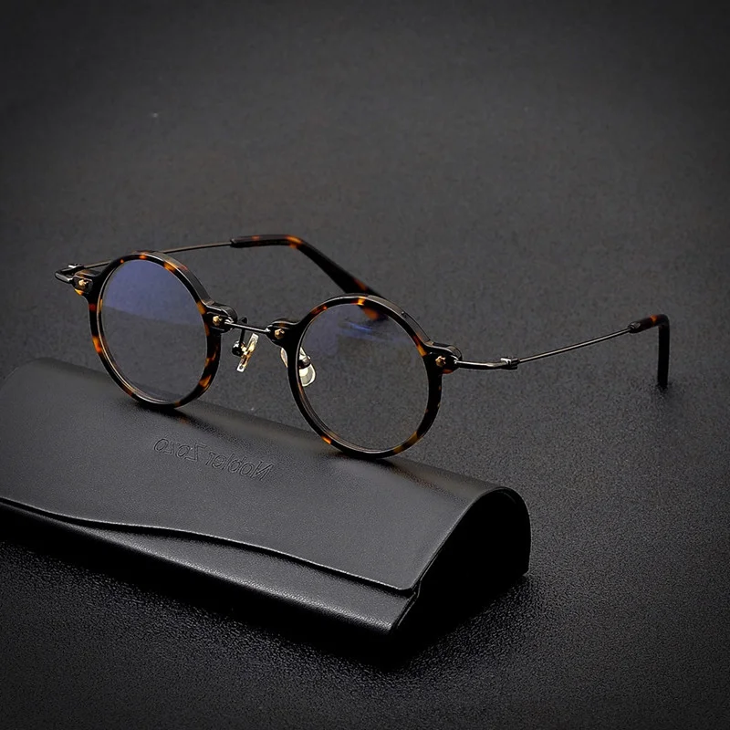 Pure titanium round glasses frame men vintage handmade acetate optical glasses frame women make prescription glasses for myopia